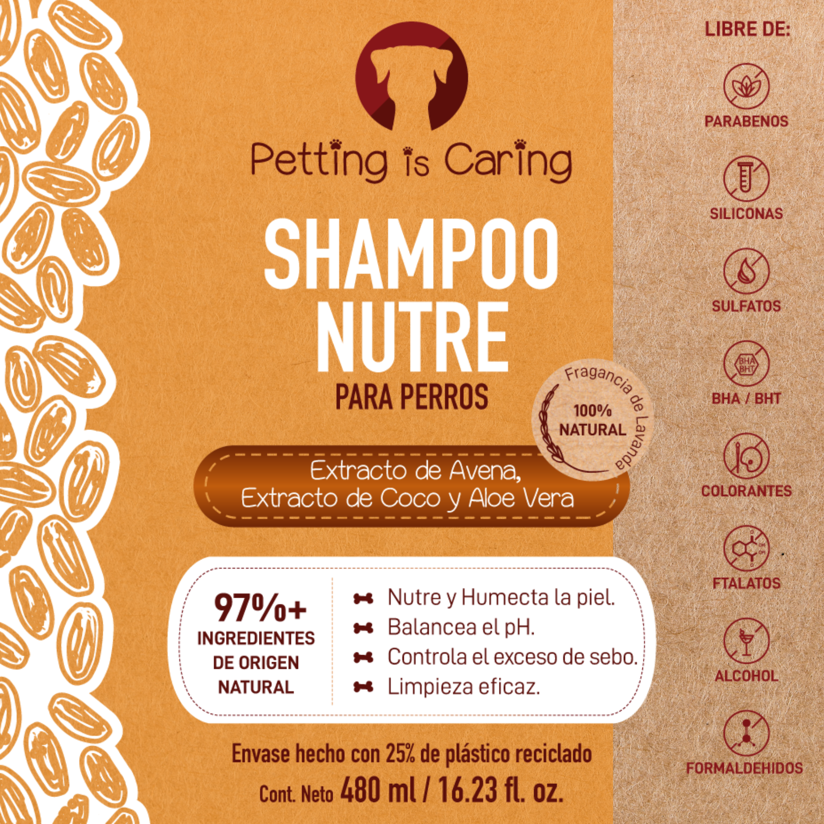 Shampoo para Perro y Gato 480 ML - Champú NUTRE con Extracto de Avena, Coco y Aloe Vera, Fragancia de Lavanda - 97% Ingredientes de Origen Natural Perro Gatos Mascotas